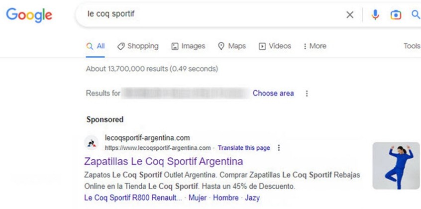 Sitios falsos en resultados de búsquedas de Google: ESET identificó en el pasado sitios que imitan a tiendas online y empresas varias y figuraban entre los resultados de búsqueda (identificados como patrocinados), en un intento de confundir a los usuarios para que ingresen al sitio falso.