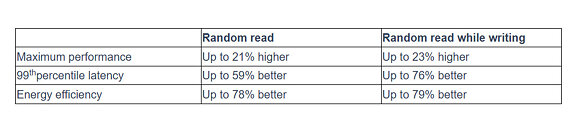 • Rendimiento de carga de trabajo y eficiencia energética inigualables de RocksDB en comparación con las SSD Gen 5 de la competencia, de la siguiente manera: